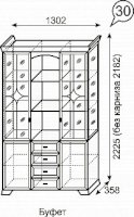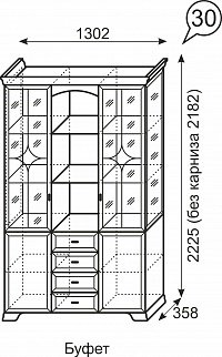 Буфет №30 Венеция (Ижмебель) – товар доступен к покупке в интернет-магазине dommebeli-v-orle.ru. Цена – 66 492 руб. без учета доставки. Стоимость дополнительных услуг и сроки получения мебели уточняйте у менеджера. Возможен безналичный расчет, оплата по карте на сайте.
