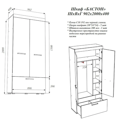 Шкаф Бастон (Эра) – товар доступен к покупке в интернет-магазине dommebeli-v-orle.ru. Цена – 12 452 руб. без учета доставки. Стоимость дополнительных услуг и сроки получения мебели уточняйте у менеджера. Возможен безналичный расчет, оплата по карте на сайте.