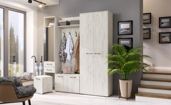 Модульная система для прихожей Италия - это модульная программа, имеющая в своем составе 16 элементов для грамотного обустройства прихожей. Фасады светлых декоров с комбинируются с тёмным корпусом.